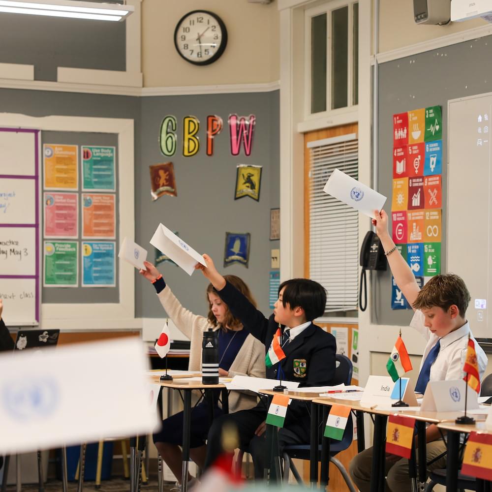 In a simulation of global diplomacy, Grade 6 students recently participated in a Model United Nations session, delving into the complexities of the fast fashion industry and its impacts on the economy and the environment. Guided by their teacher, Ms. Wilson, students assumed the roles of various countries to debate and discuss the issue.